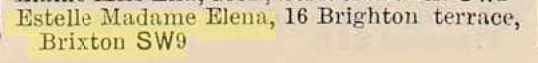 On 1st March 1917, Thomas Bold Bridge died aged 75. He and Elena had been married for 33 years. He was interred in the City of London Cemetery in my paternal family grave, purchased by Elena’s father, Daniel Crudgington. Tom and Elena had no children together but he did have a daughter with his first wife. Present at the graveside would also have been his and Elena’s theatrical family. The couple had taken in lodgers who undoubtedly would have brought in an income but also provided some human company after Tom had departed. A comedian called Jollyboy Mack gave his address as 16 Brighton Terrace in 1917 and in 1921, an unemployed Belgian telephone assembler and his wife were recorded as living with Elena as boarders in the five rooms that she occupied. Elena continued to advertise her services as a teacher of all styles of stage dancing in The Stage, but these cease in 1923. She also posted regular memorial notices in The Stage remembering her dear husband: “Never forgotten by his sorrowing wife, Elena Estelle.” To compound her sorrow, a great nephew, William Nelson Sloper, was killed on the battlefields of France in 1916. His mother, another of Elena’s nieces, died before receiving his war medal in 1921, so instead, this was posted to Elena as his sole living relative.