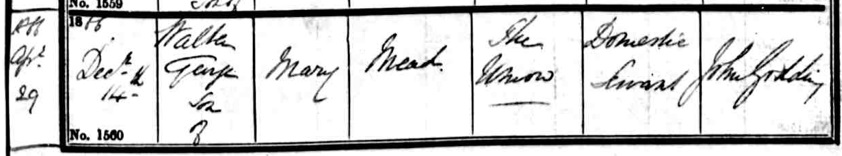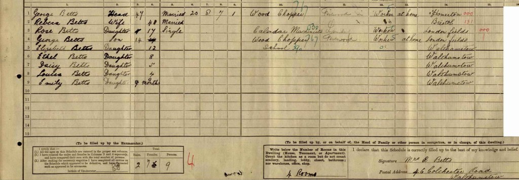 George was born in 1866 in Homerton. My father told me that his grandfather was illegitimate and the product of a liaison between his mother, a servant girl, and her employer. All I know of George’s mother, I have deduced from my own research and what little my father and grandmother were able to tell me. I know that his birth surname was Mead and I believe that his mother’s name was Mary. Every St Patrick’s Day, George would put on his best funereal attire, pin a bunch of shamrock leaves to his coat lapel and demonstrate his pride in his Irish heritage. My father told me that George’s surname was later Betts and that this was his preferred name. George fiercely rejected any association with his unnamed paternal link, but sadly, also his maternal surname.