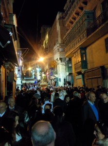 Easter Sunday brings another huge parade to the streets of Valletta, with heavy statues carried in front of throngs of spectators. The atmosphere is more celebratory and, as I discovered, the best vantage point was at the top of hill where the statue-bearers, cheered on by the crowds, run up at impressive speed. The church bells ring out and the whole island celebrates. It is a wonderful spectacle. The restaurants and cafes were doing a brisk trade and I felt that I was part of something joyous, traditional and significant. The community was there in its entirety. I returned to my hotel after midnight and gazed out across the island from my hotel window.
