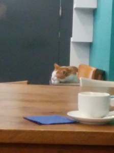 I located a quiet cat cafe. The cats were quiet because most were asleep. The cafe was quiet because custom was slow. The staff were very welcoming and explained the rules. All of the cats were rescues, customers were not to pick them up or approach them but the cats can approach customers and then can be petted. It was a warm and cosy haven and I really enjoyed spending time watching them and drinking hot coffee from a cat shaped mug.