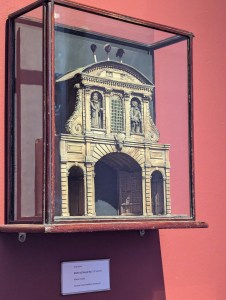A model of Temple Bar, with gruesome decoration, hosed in the room above the gate