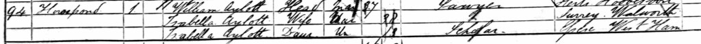 The area where the Aylotts lived is unrecognisable today. Extensive bomb damage from World War II, removal of old industrial buildings and slums, development of the London Olympic site have changed the area completely. Living so close to several rivers, with the City Mill River running almost by their front door, living at Horsepond would have been a hazardous place for young children. In the 1861 census, Isabella had been joined by Eliza Ann, William junior and George James.