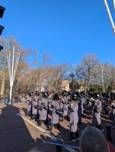 The following day, I was due to return home. It was a beautiful morning, with sparkling sunshine and spring-like temperatures. I walked through St James’ Park and intended to cross The Mall. Unfortunately, my intentions were quashed by the touristic delight that is the Changing of the Guard. I negotiated the crowds apologising as I went. When I reached the crossing point, the guards were approaching so I knew that I would have to wait, along with a large number of tourists.