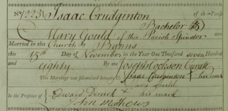 Isaac Crudgington married Mary Gould in St Leonard’s Church, Shoreditch in 1780