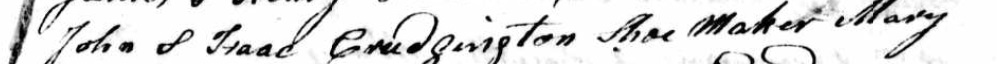 The Crudgingtons were shoemakers which was a non-location dependent trade but it did surprise me to learn that John, and a number of his siblings, were baptised at St Saviour’s church, Coplestone Road, Denmark Park, Southwark – an area that we would now class as Peckham. Perhaps Isaac opened a shop there, or had other relatives that I have not yet found, but it certainly did not appear to fit the pattern of residence.