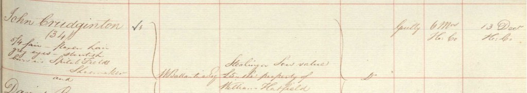 The Crudgingtons never cease to amaze and intrigue me. Although John was not a master criminal, one of his sons, Isaac, made a career of it, and will be the subject of a future post. It was a long way from Shropshire to London, but once they had arrived, the Crudgingtons certainly made their mark.