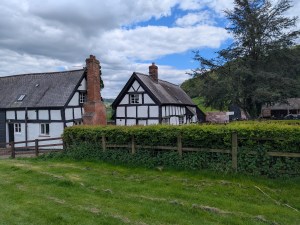The start line is behind these two cottages – the white banner on the right says ‘start’