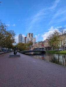 Delfshaven doesn’t disappoint. It’s a lovely little reminder of Old Rotterdam and its commercial past. On the either side of two wharfs are two windmills: one with sails and the other without. The sailed windmill doubles as a museum, cafe, shop, and language centre. I shared a table with some other English tourists from Birmingham. To add to the coincidences, the windmill owner was also of Huguenot extract. I road tested my spoken Dutch a little and he corrected my pronunciation a little, as might be expected of a language teacher. I promised to return and take a language lesson.