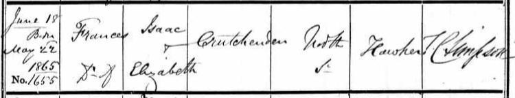 Frances, daughter of Isaac Crudgington and Elizabeth Passingham, born 1865