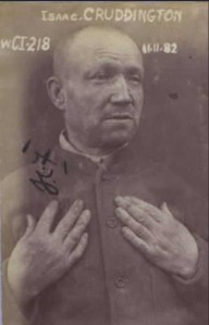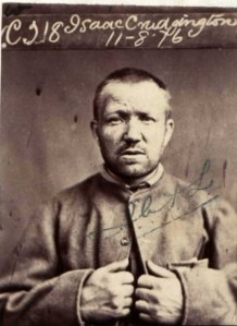 Sometimes, it is hard to know where to begin. During my family history research, which has extended over twenty years, a name leaps out from the page, and conjures an image. In the case of Isaac Crudgington, I do not need to employ my imagination because I have seen early photographs of the man. He looks every inch a Dickensian convict. With close cropped hair, and a stubbly face, a smirk that almost says: “I never did nuffin gov’ner!”. His hands are against the course prison jacket, in a gesture of mock surprise at finding himself incarcerated again.