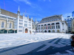 My trip to London in mid-June was very hot. However, I remembered from a previous visit that the Guildhall Art Gallery had impressive air conditioning, probably for the benefit of the paintings, but I could profit from it too on so hot a day. It was a wonderful relief from the stifling heat of the concrete jungle outside. When I ventured out into the afternoon sun, which was still baking the pavements, a group of Spanish tourists were taking a short stop outside of the Guildhall. Some were waving fans and guzzling from bottles of water, all were trying to stand in a small patch of shade. They may have heard that it rains a great deal in England and perhaps were not expecting Mediterranean heat in EC2!