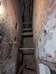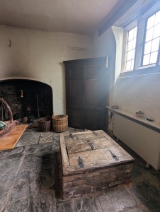 Visitors begin their tour in the kitchen, which is a vast size, with two huge fireplaces. One fireplace was for general cooking and the other, for spit roasting. It was apparently, a small person’s role to turn the spit. This process was later automated with an elaborate system of a weight, pulleys and gears, that extended up into a vertical space above the fireplace, to accommodate the mechanism. There is also a smaller bread oven, not much larger than the size of a pizza oven.