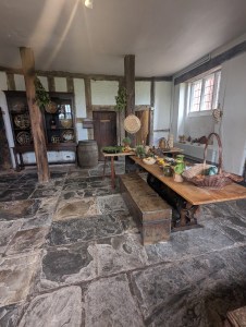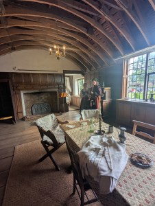 Next door is the withdrawing room, with its homely table and magnificent curved beam ceiling. We were treated to Elizabethan music played on recorders by two expert musicians. The recorder is a hugely underestimated instrument in my opinion. It is easy to learn but deceptively difficult to master well.