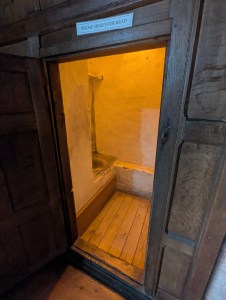 There is another bedroom with its own privvy, which the downstairs bedroom also has. An Elizabethan house with en suite bedrooms. It’s hard not to be impressed. Apparently, clothes were hung in the privvy because even they object to the small of human waste.