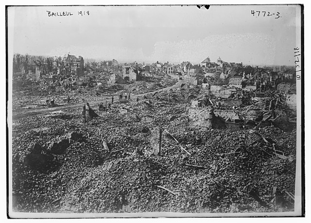 Bailleul in 1918 – By Bain News Service, publisher – Library of Congress Catalog: https://lccn.loc.gov/2014708107Image download: https://cdn.loc.gov/service/pnp/ggbain/27900/27946v.jpgOriginal url: https://www.loc.gov/pictures/item/2014708107/, Public Domain, https://commons.wikimedia.org/w/index.php?curid=67518811