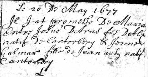The earliest certain record that I have is of Alexandre D’Arras who was born in 1620. His father, Mathieu, presumably stayed in France but Alexandre emigrated to England, as a young man, and headed to Canterbury. A community of Strangers, consisting of French Huguenots and Walloons from Belgium and the Netherlands, was already established, after the first few families had arrived in the 1570s. In 1640 Alexandre married Marie Toillier who hailed from Saint Tricat. I am always excited to learn of a new association with my beloved France and I discovered that Saint Tricat is just outside of Calais, a short distance from the high-speed rail line to Paris and the entrance to the Channel Tunnel in Frethun. I have sped past this spot many times on Eurostar trains and never given it a second thought. I know Calais exceedingly well from a huge number of shopping trips undertaken when my parents lived on top of the White Cliffs of Dover. I never would have considered that I had a familial association with this area. What were the push and pull factors that brought Alexandre and Marie to Canterbury, to fall in love, to marry and raise a family there? Young, ambitious and skilled, Alexandre may have seen his future safety and prosperity.