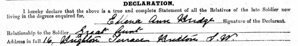 At the outbreak of World War I, William Nelson was working as a pastry cook’s assistant and living with his mother in London Lane, Hackney. His is another story but, tragedy was to strike one more time in 1916 when William Nelson went missing, presumed dead in the Battle of Delville Wood. When war ended, there seemed to be a number of communications before medals, effects and other monies were released. This was too long, and Elizabeth died in 1920 so she never received his war medal. Instead, this was sent to his great aunt Eleanor Bridge (Crudgington) which allowed me to confirm their relationship.