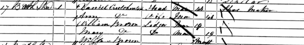 Elizabeth’s maiden name was Brown. Her father was William Brown, Mary Ann’s first husband. Mary Ann was less than truthful on recording details in official documents, so I cannot with any certainty state that they were legally married and have been unable to locate a marriage record – either with Deighton or Crudgington as Mary Ann’s name. In 1861, she was recorded as a lodger at the Crudgington’s abode in Baxendale Street. Ann was definitely her mother and potentially, Daniel could have been her father. She was living with first husband William Brown and baby son, also William.